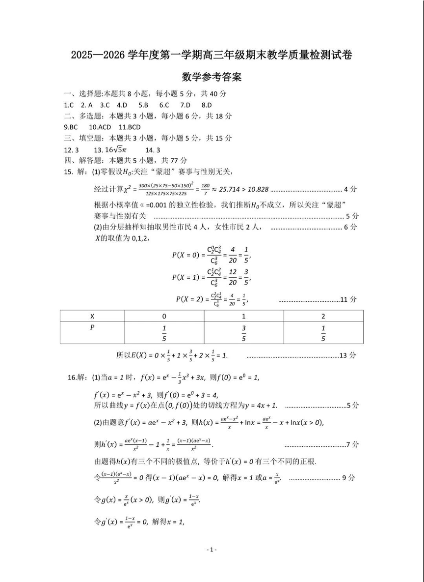 2025—2026学年度第一学期高三年级期末教学质量检测 数学答案.pdf