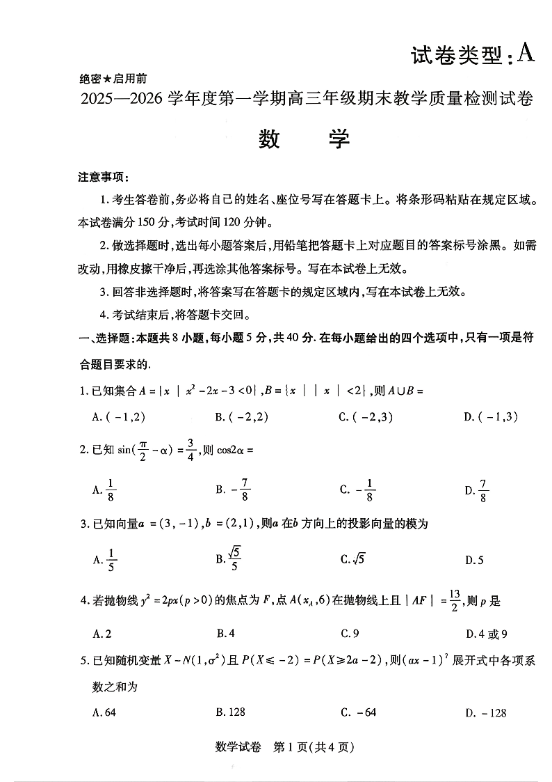 2025—2026学年度第一学期高三年级期末教学质量检测 数学.pdf