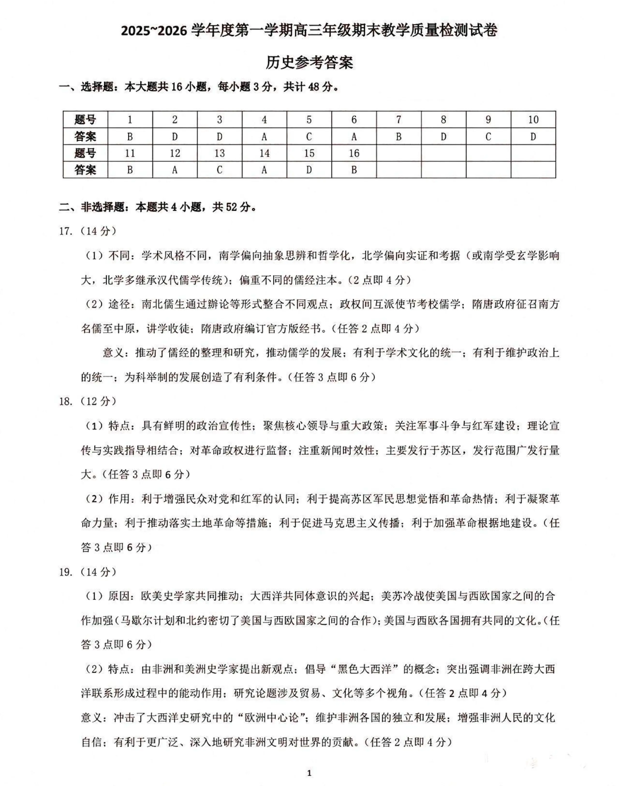 2025—2026学年度第一学期高三年级期末教学质量检测 历史答案.pdf