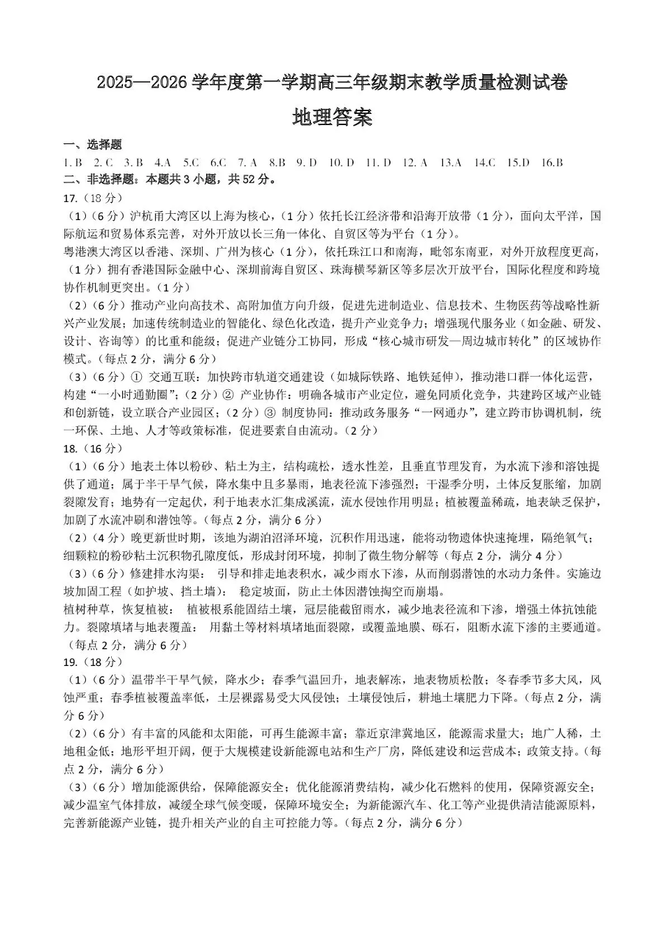2025—2026学年度第一学期高三年级期末教学质量检测 地理答案.pdf