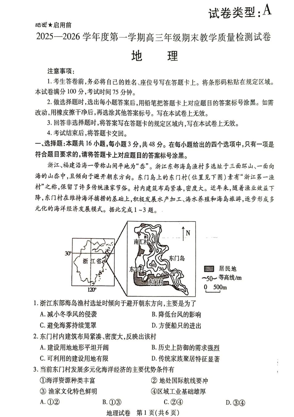 2025—2026学年度第一学期高三年级期末教学质量检测 地理.pdf