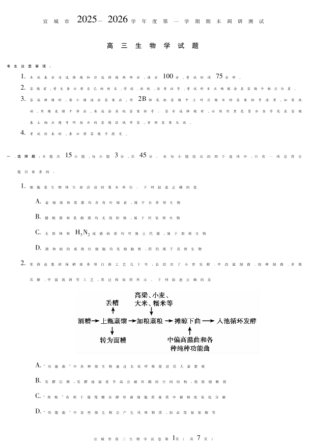 宣城市2025-2026学年度第一学期期末调研测试 生物.pdf