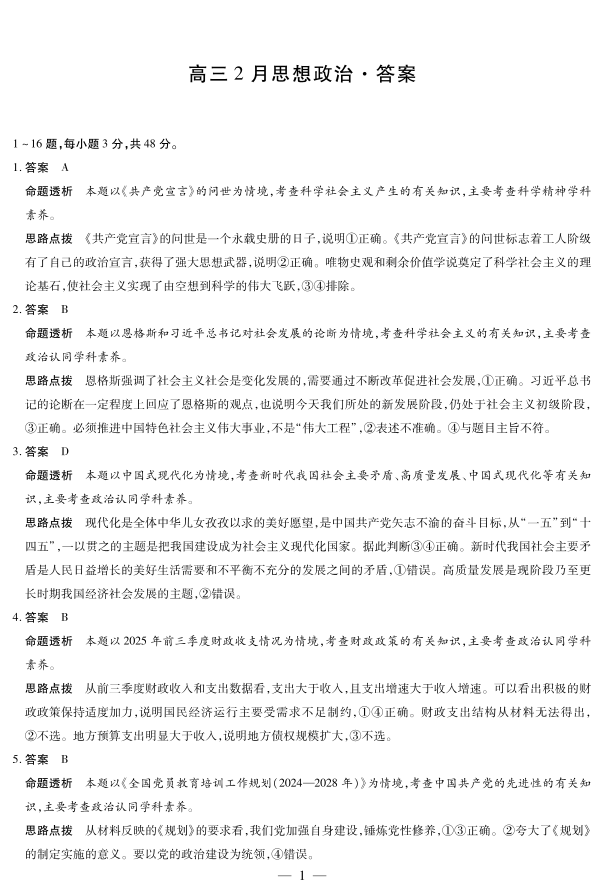 毫州市普通高中2025—2026学年度第一学期高三期末质量检测 政治答案.pdf