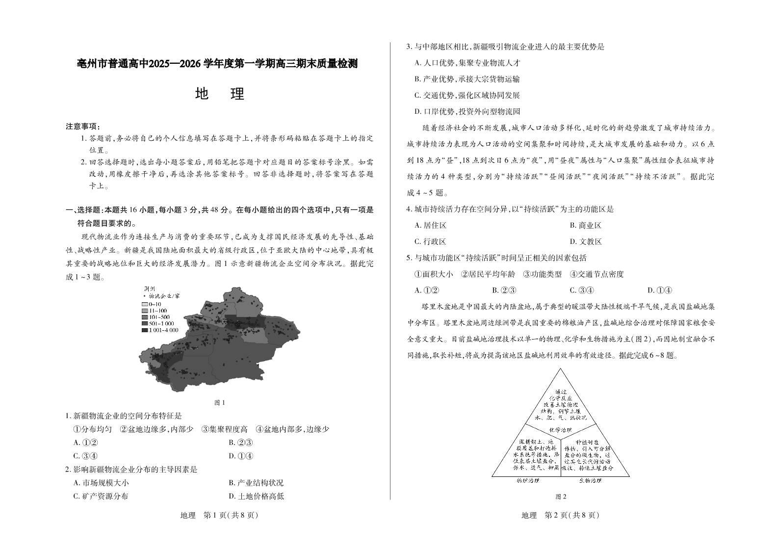 毫州市普通高中2025—2026学年度第一学期高三期末质量检测 地理.pdf