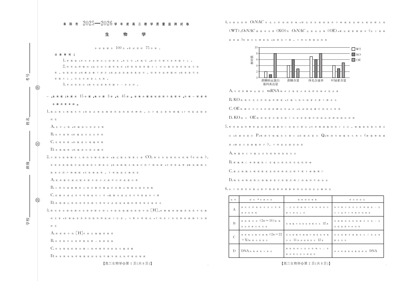 安徽省阜阳市2025一2026学年度高三教学质量监测 生物.pdf