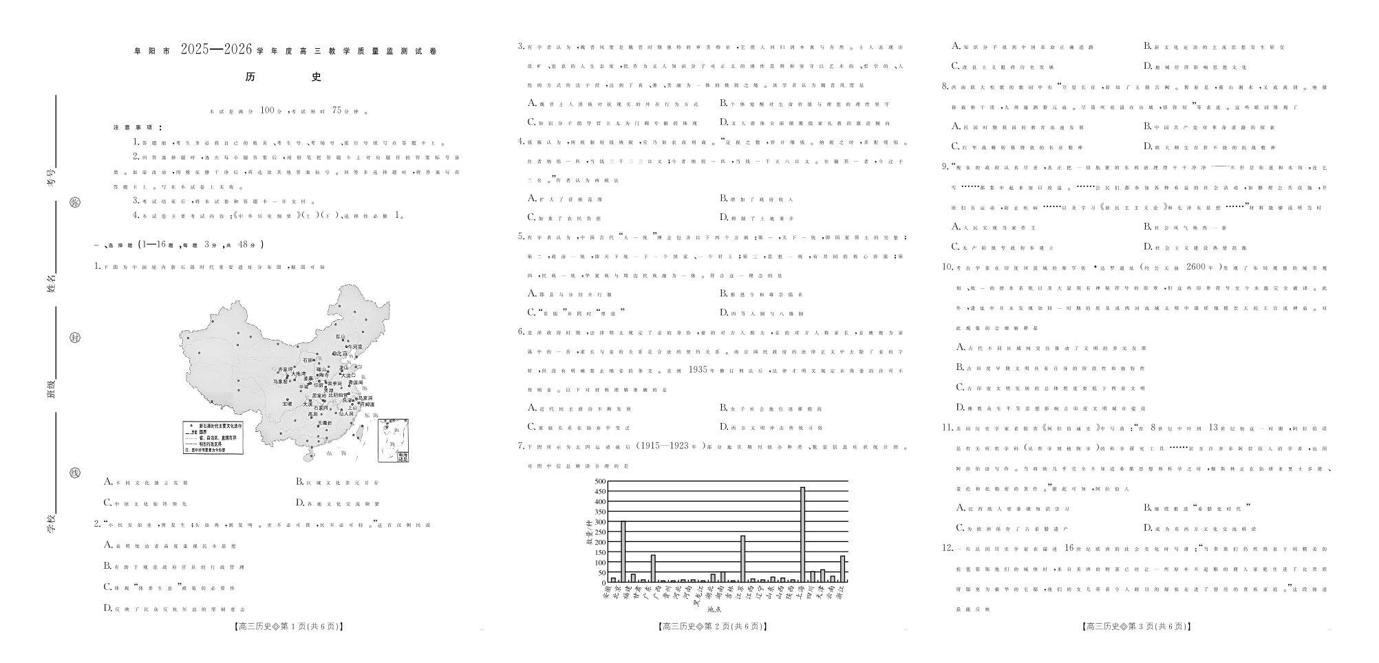 安徽省阜阳市2025一2026学年度高三教学质量监测 历史.pdf