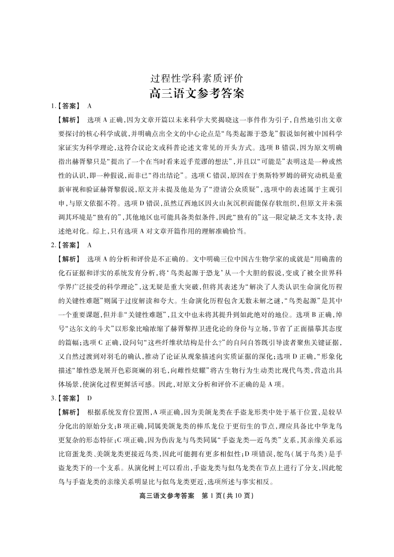 安徽省鼎尖联考2025-2026学年高三上学期期末过程性学科素质评价 语文答案.pdf