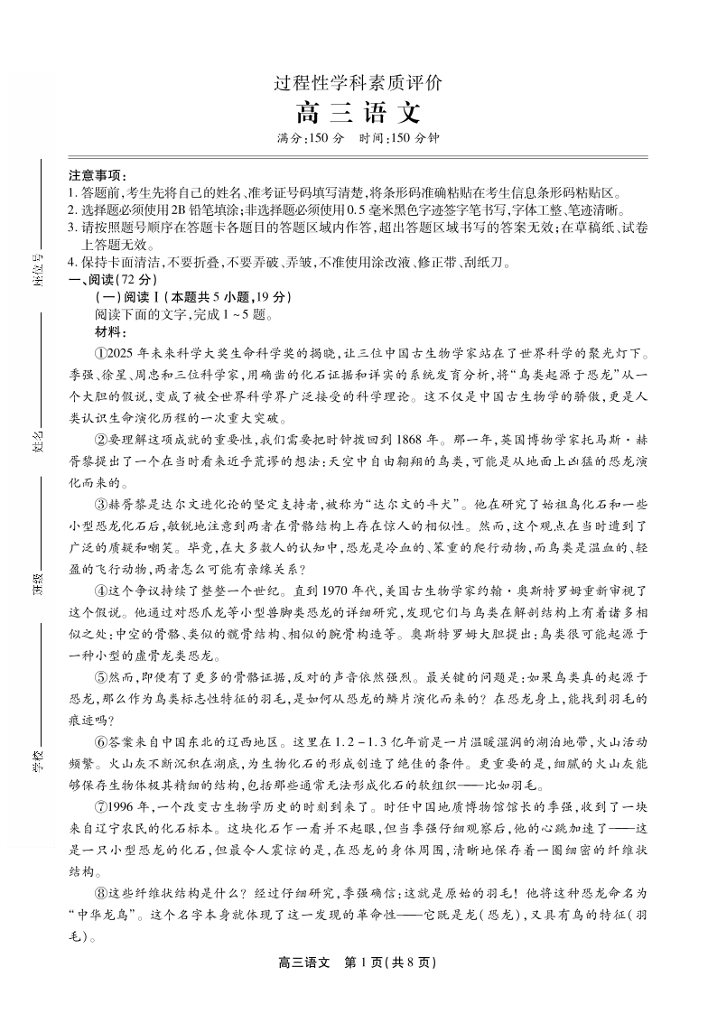 安徽省鼎尖联考2025-2026学年高三上学期期末过程性学科素质评价 语文.pdf