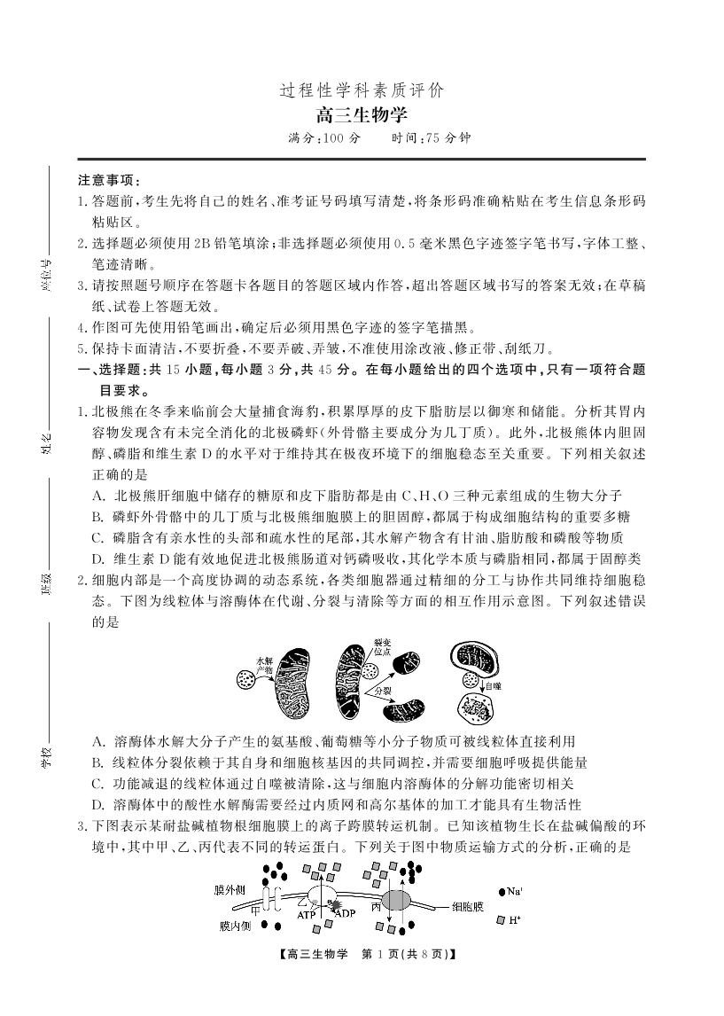 安徽省鼎尖联考2025-2026学年高三上学期期末过程性学科素质评价 生物.pdf