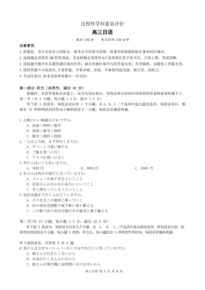 安徽省鼎尖联考2025-2026学年高三上学期期末过程性学科素质评价 日语.pdf