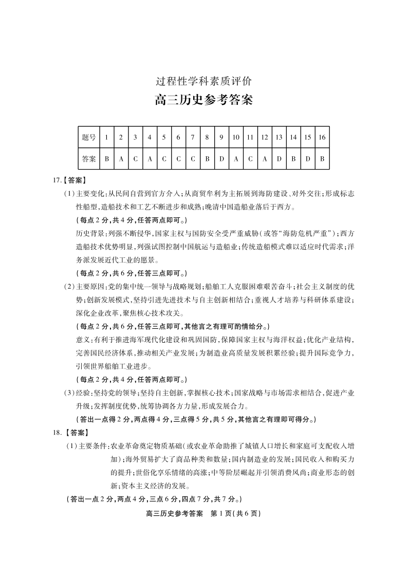 安徽省鼎尖联考2025-2026学年高三上学期期末过程性学科素质评价 历史答案.pdf