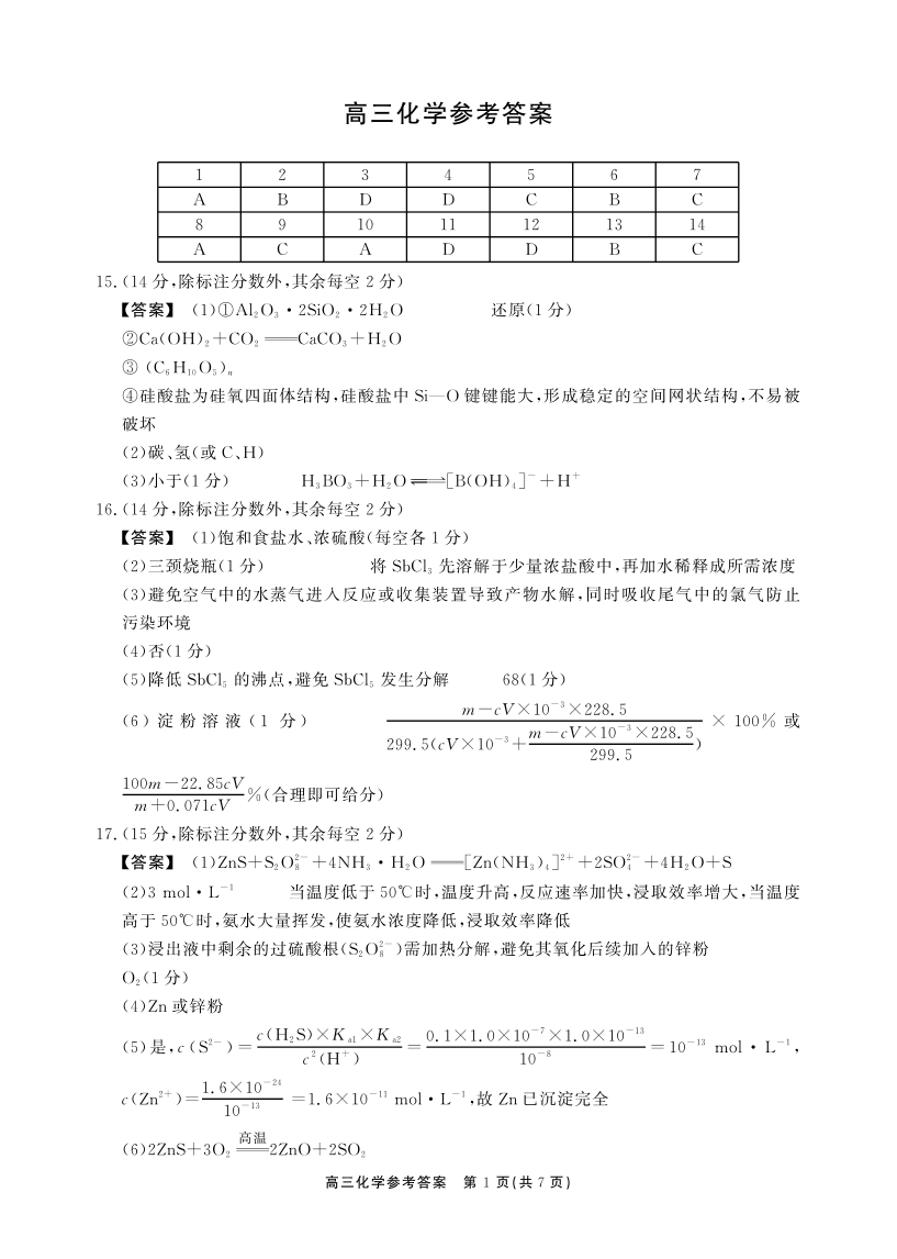 安徽省鼎尖联考2025-2026学年高三上学期期末过程性学科素质评价 化学答案.pdf
