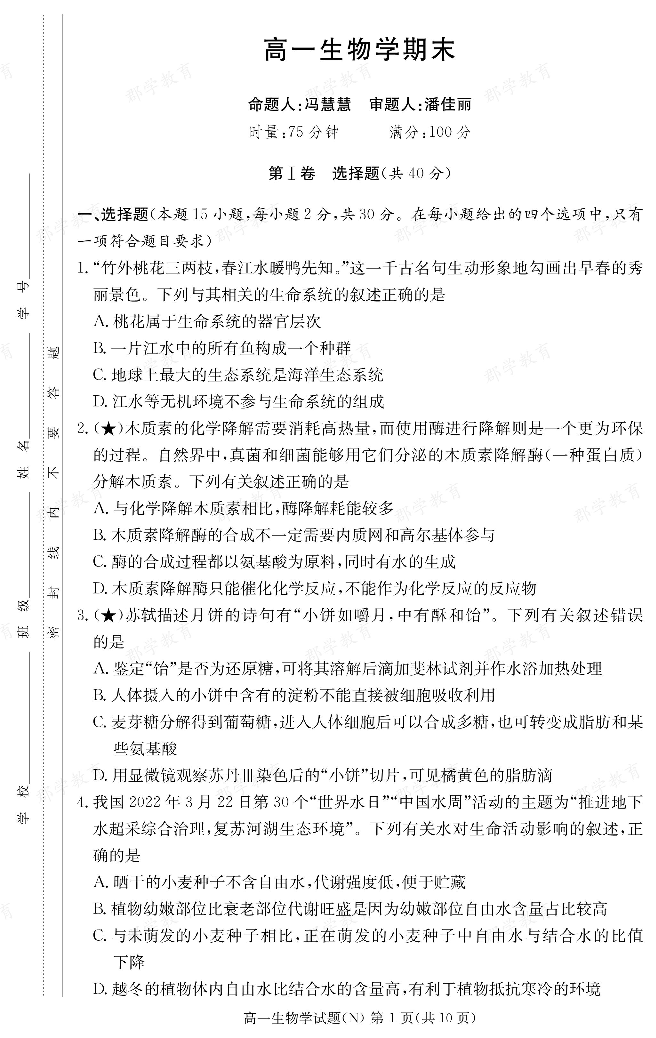 生物试卷(高一期末N).pdf