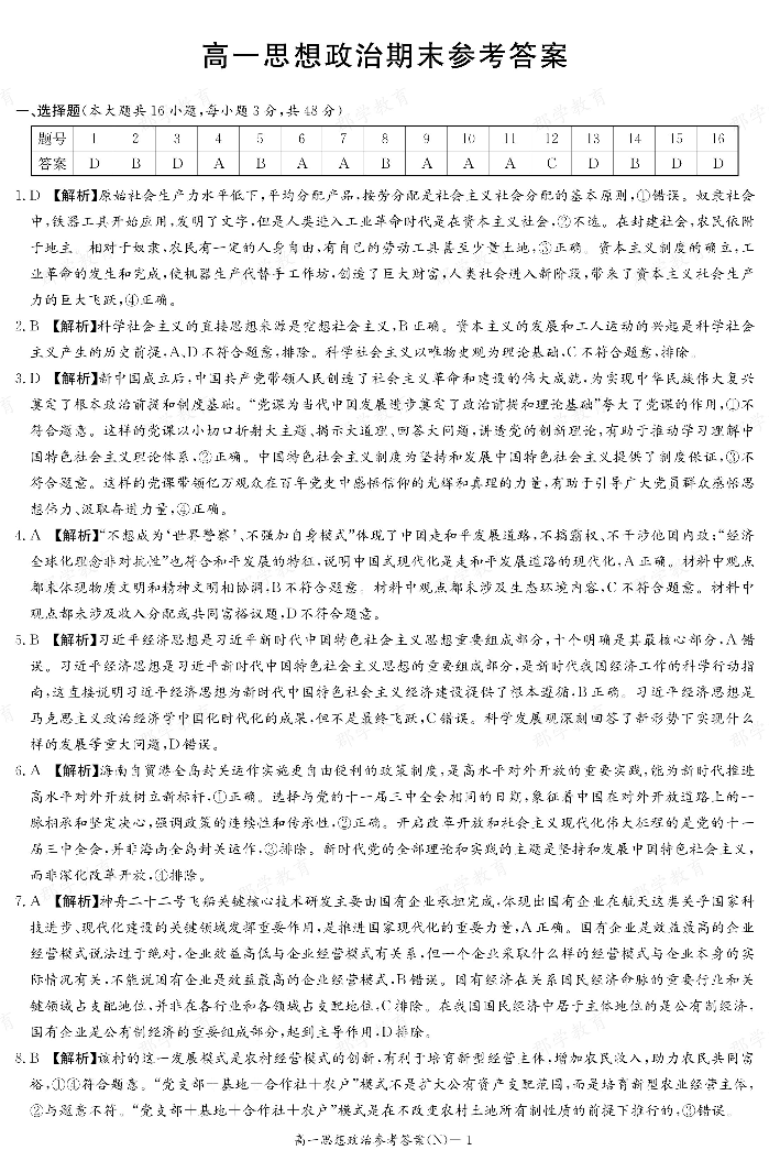政治答案(高一期末N).pdf