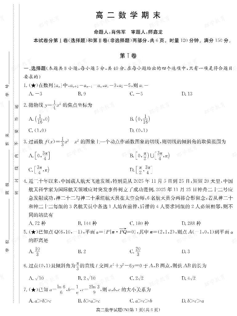 数学试卷(高二期末N).pdf