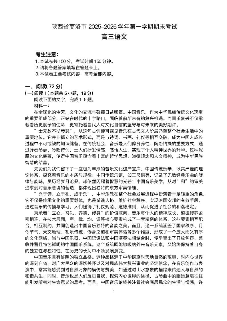 陕西省商洛市2026届高三上学期2月期末考试 语文试题(含答案).pdf