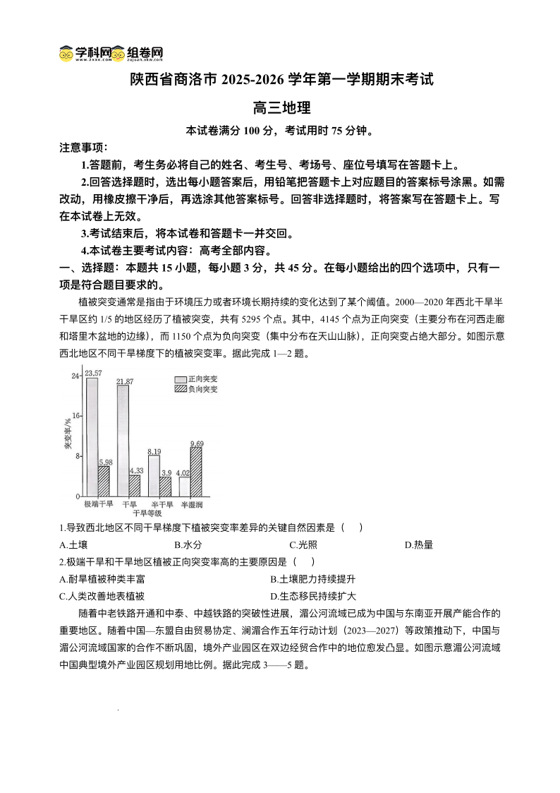 陕西省商洛市2026届高三上学期2月期末考试 地理试题(含答案).pdf