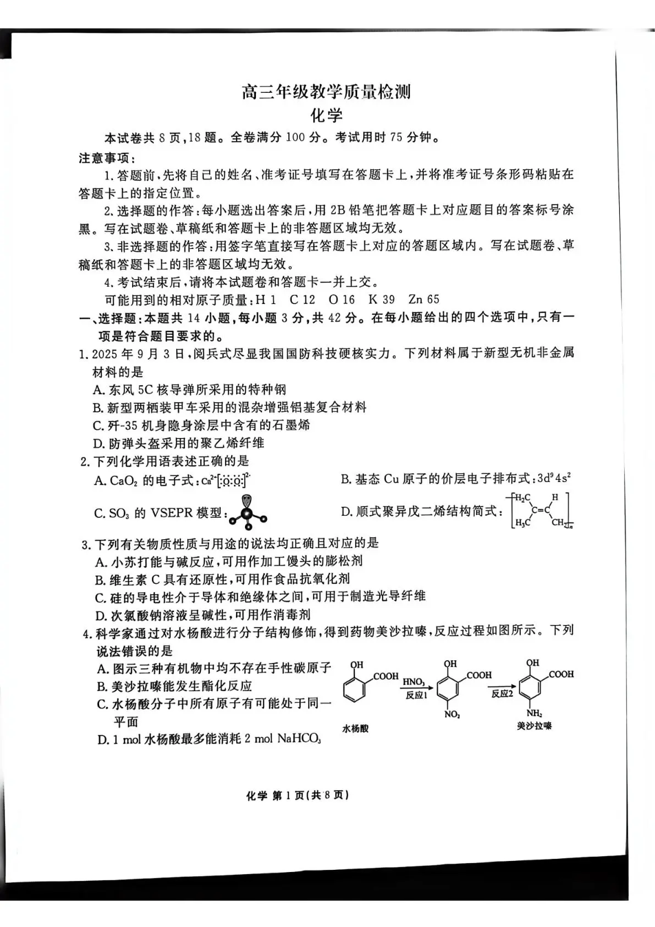 陕西省衡水金卷2026届高三上学期2月联考 化学.pdf