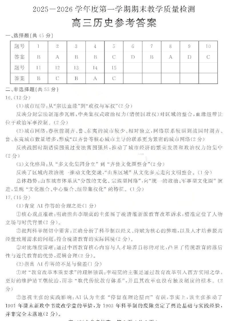 山东省聊城市2025-2026学年度第一学期高三年级期末教学质量检测 历史答案.pdf
