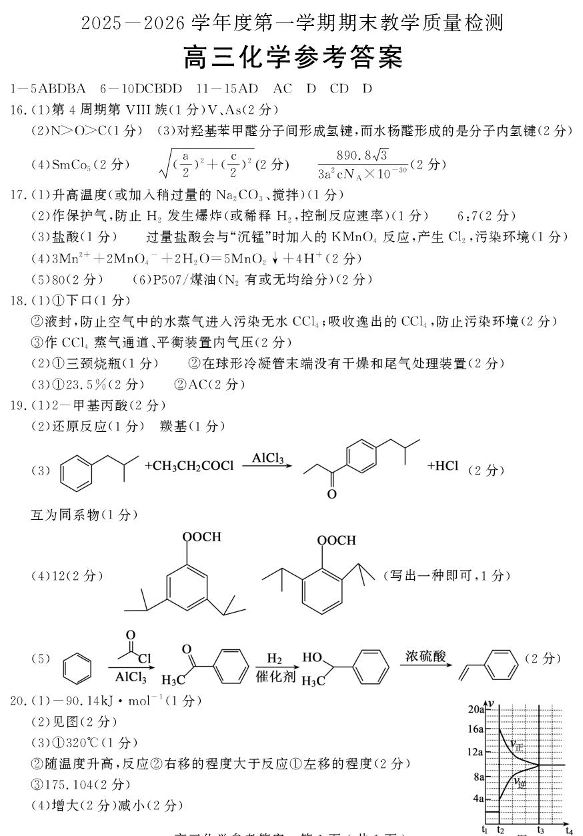 山东省聊城市2025-2026学年度第一学期高三年级期末教学质量检测 化学答案.pdf