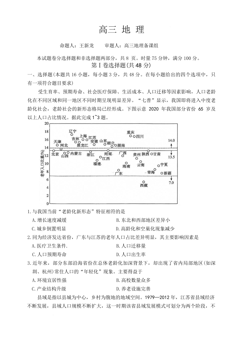 湖南省长沙市雅礼中学2025-2026学年高三上学期2月期末 地理试题(含答案).pdf