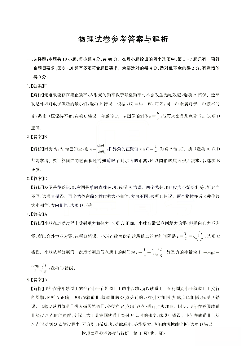 湖北省圆创教育2026届高三2月期末考试 物理答案.pdf