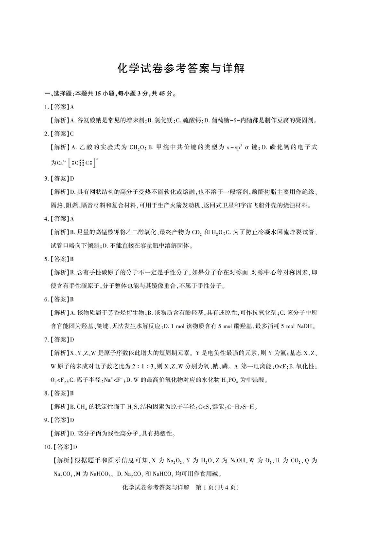 湖北省圆创教育2026届高三2月期末考试 化学答案.pdf