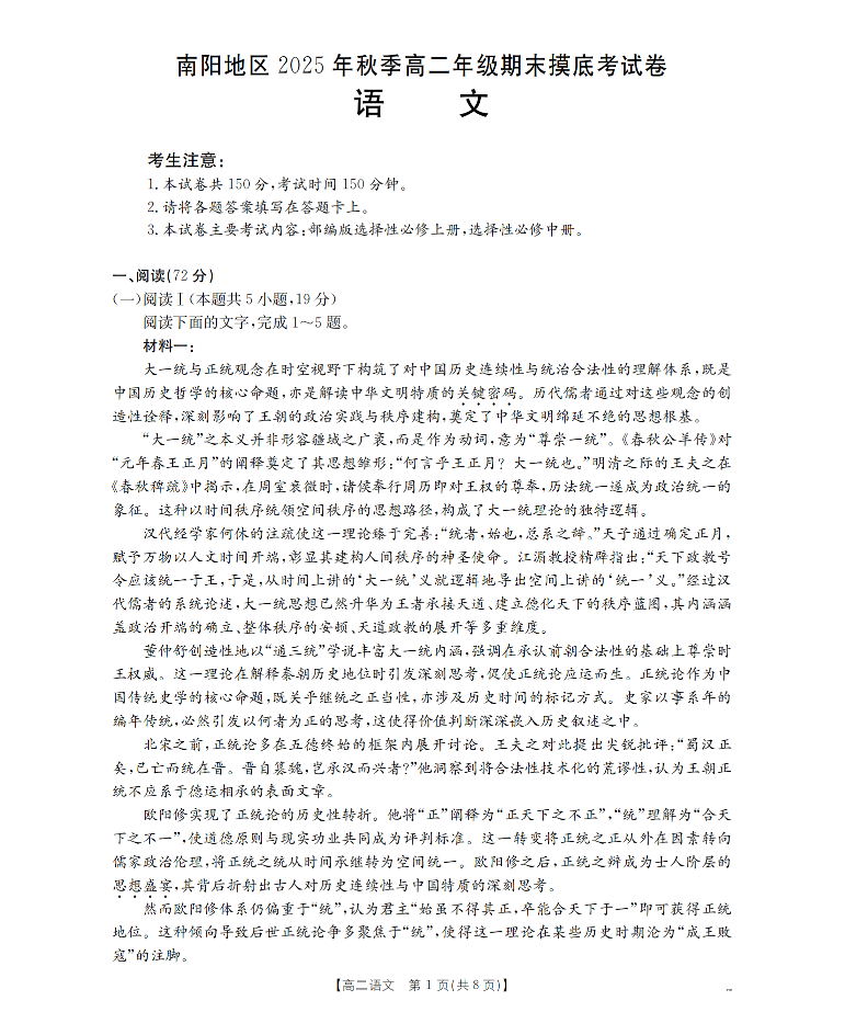 河南省南阳地区2025-2026学年高二上学期期末摸底考试 语文.pdf