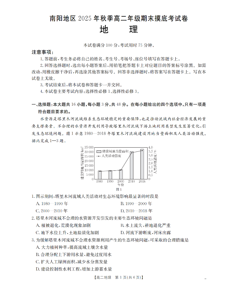 河南省南阳地区2025-2026学年高二上学期期末摸底考试 地理.pdf