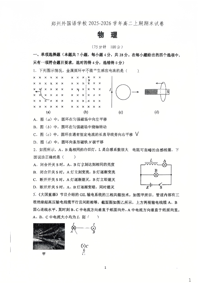 郑州外国语学校2025-2026学年高二上学期期末试卷 物理.pdf