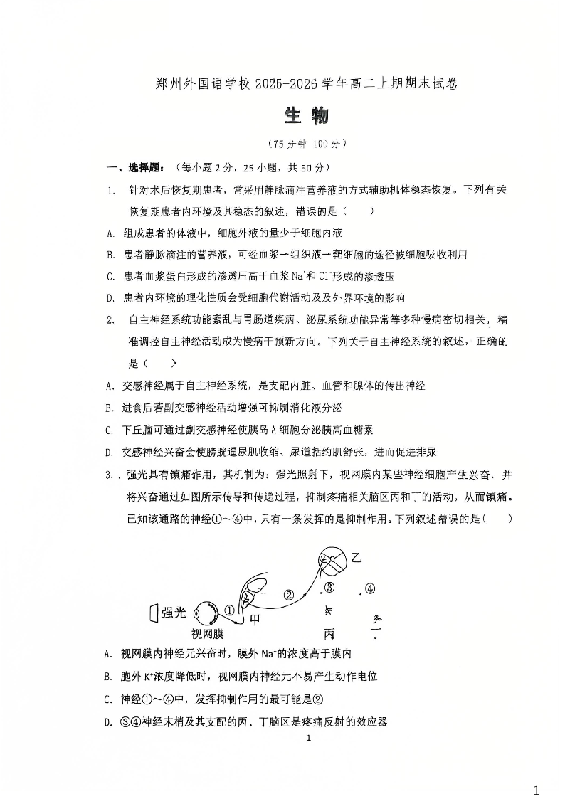 郑州外国语学校2025-2026学年高二上学期期末试卷 生物.pdf