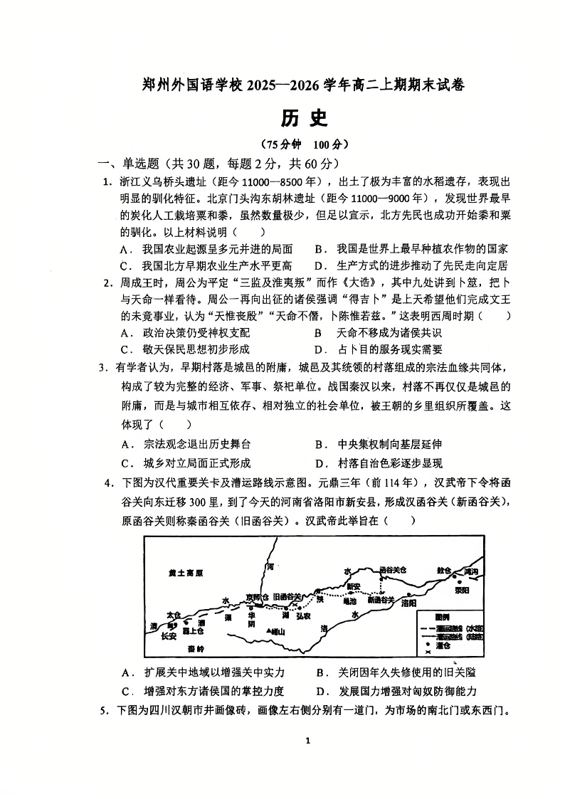 郑州外国语学校2025-2026学年高二上学期期末试卷 历史.pdf
