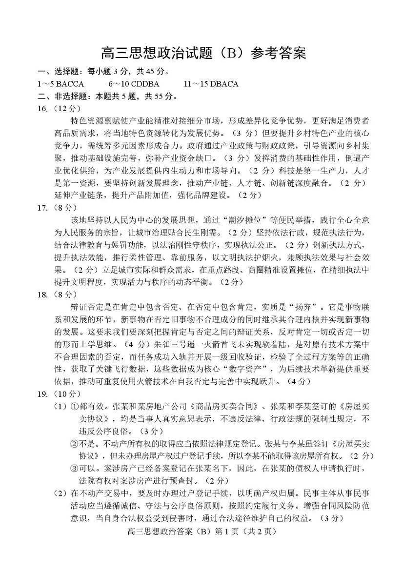 菏泽市2025-2026学年高三上学期期末 政治(B)答案.pdf