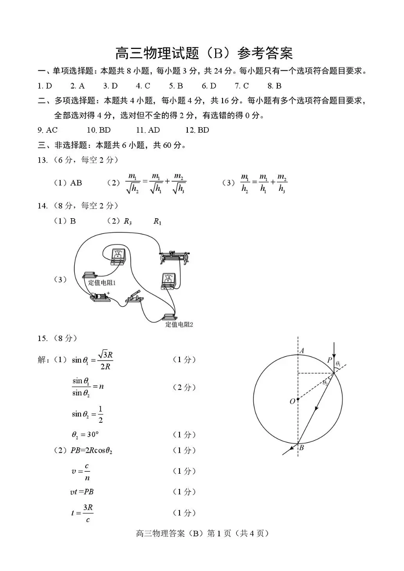 菏泽市2025-2026学年高三上学期期末 物理(B)答案.pdf