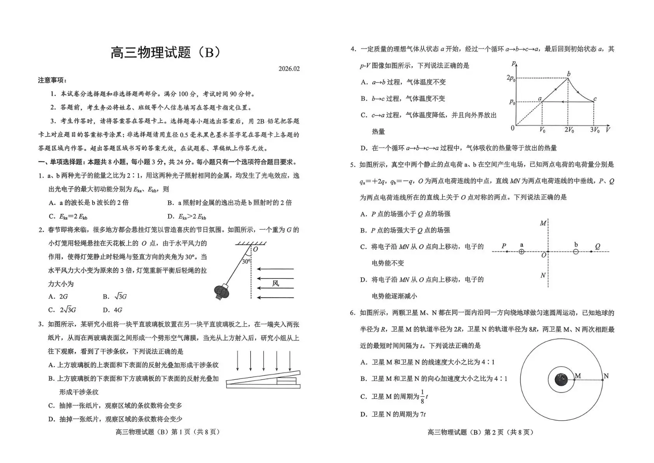菏泽市2025-2026学年高三上学期期末 物理(B).pdf
