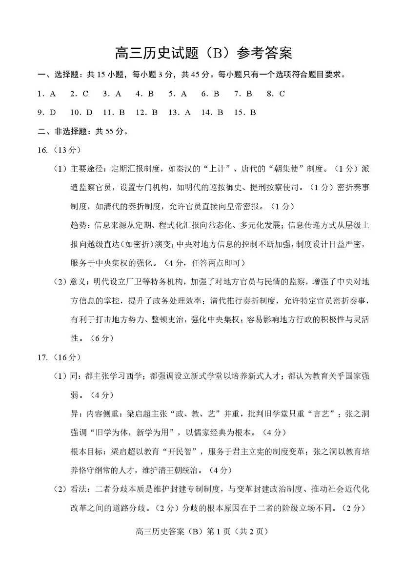 菏泽市2025-2026学年高三上学期期末 历史(B)答案.pdf