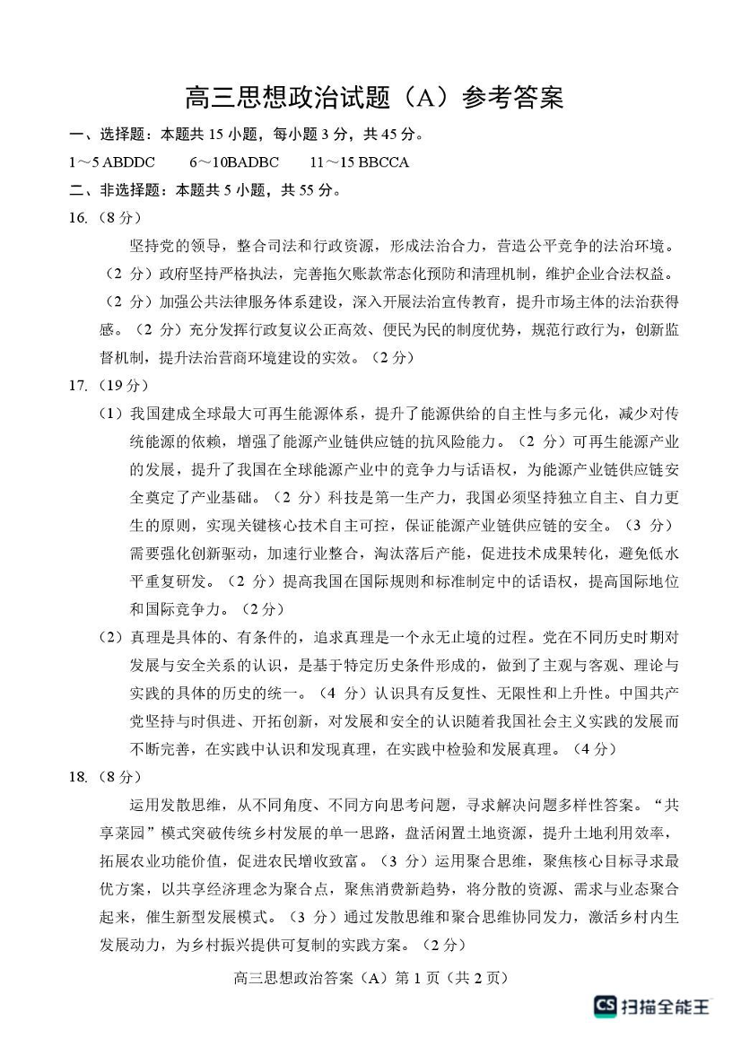菏泽市2025-2026学年高三上学期期末 政治(A)答案.pdf