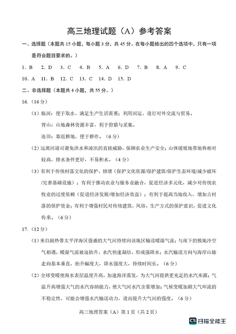 菏泽市2025-2026学年高三上学期期末 地理(A)答案.pdf