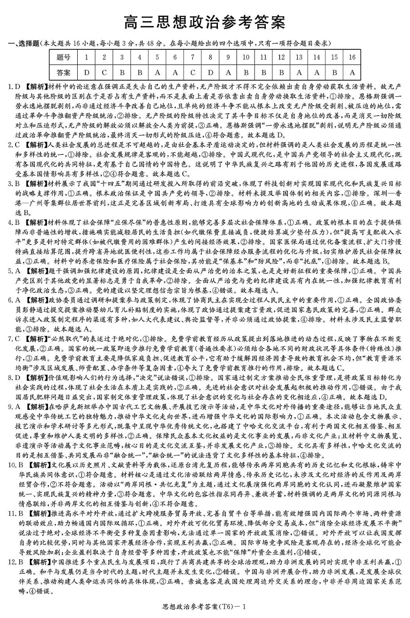 湖南师大附中2026届高三月考试卷(六)政治答案.pdf