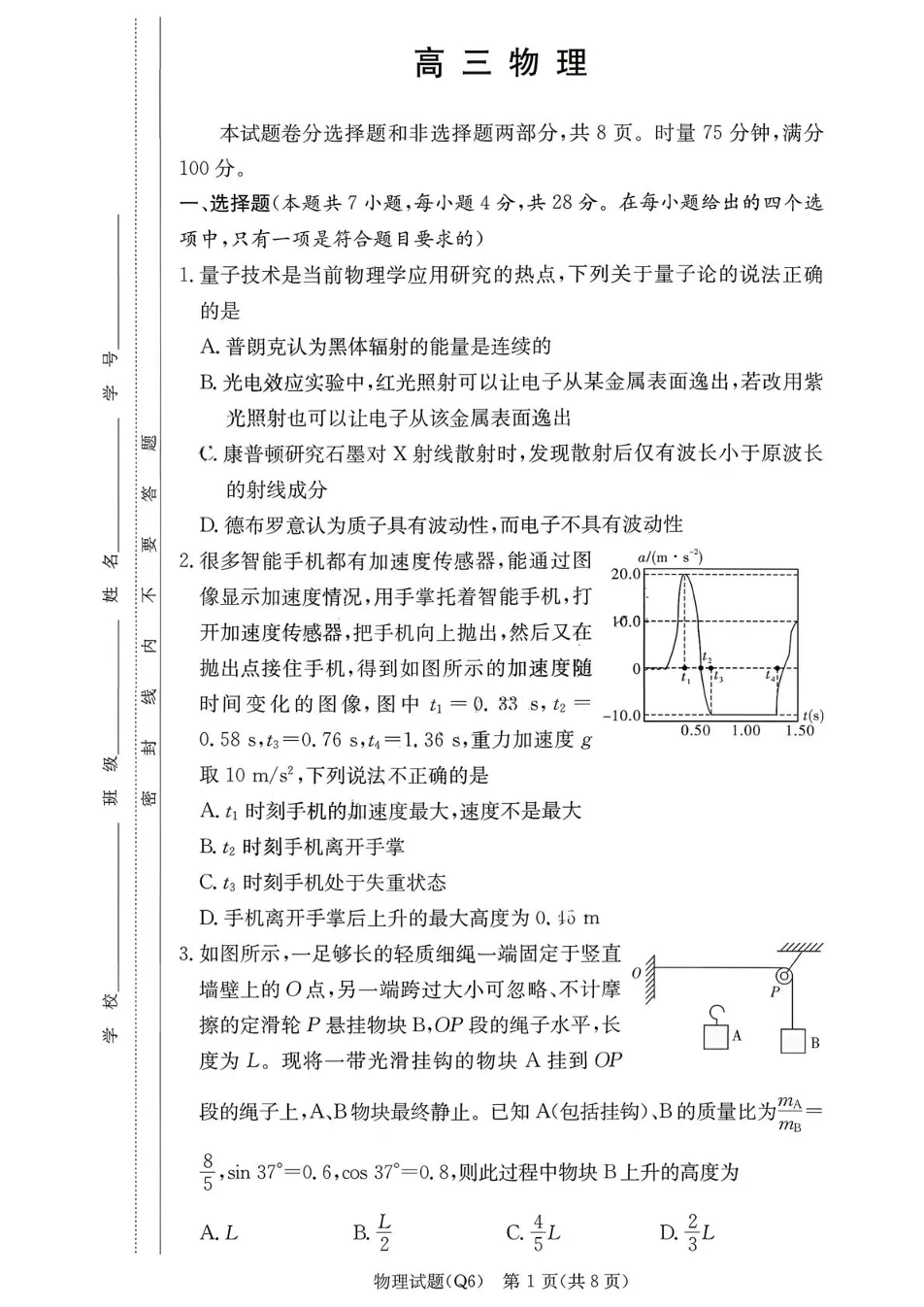 长沙市一中2026届高三月考试卷(六)物理试题(含答案).pdf