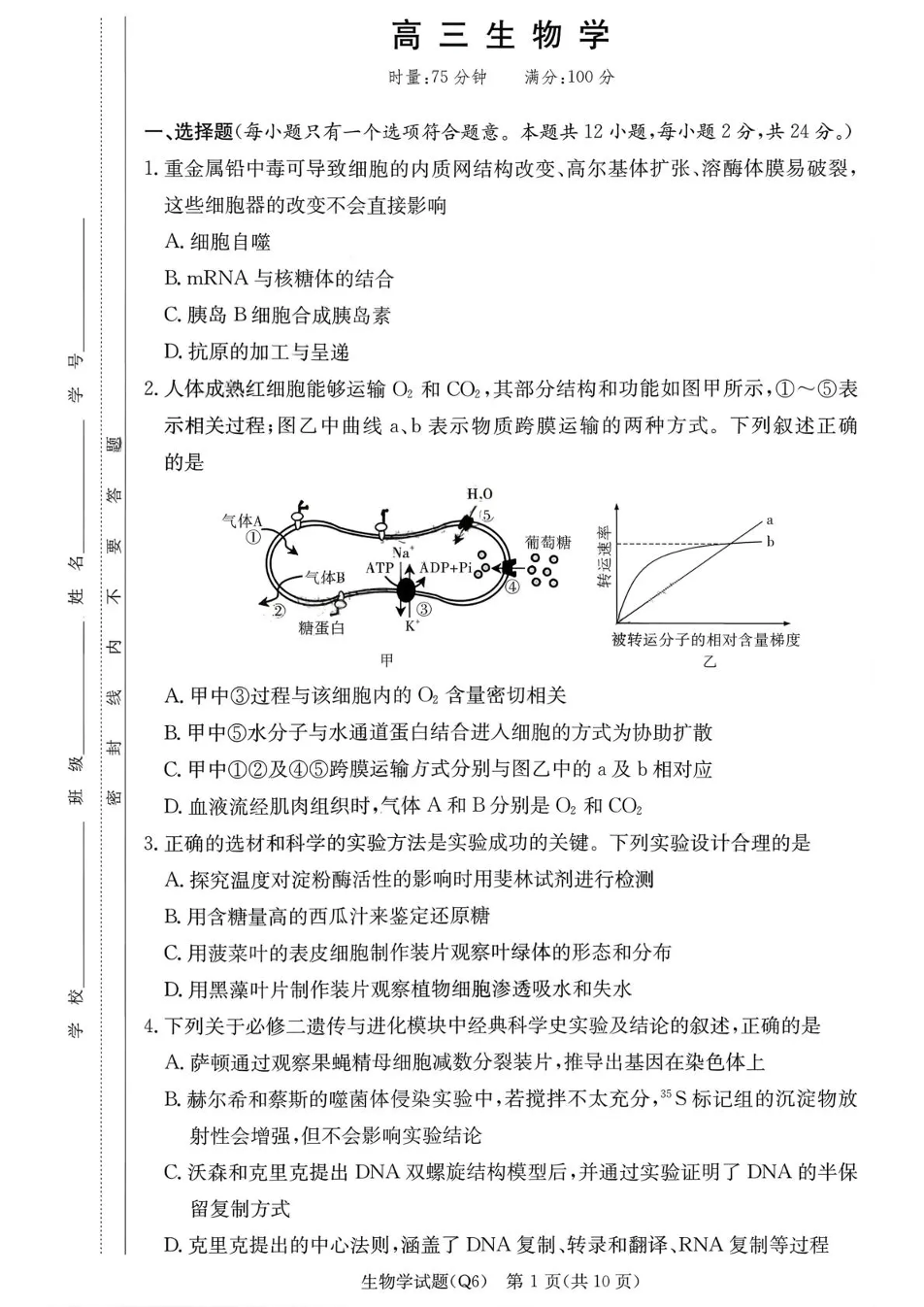 长沙市一中2026届高三月考试卷(六)生物试题(含答案).pdf