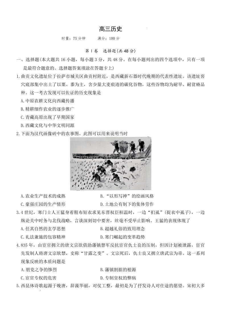 长沙市一中2026届高三月考试卷(六)历史试题(含答案).pdf