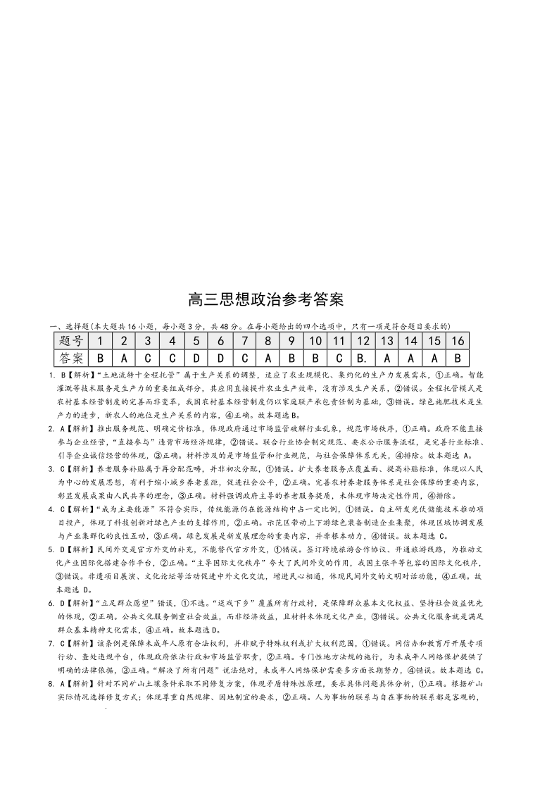 长郡中学2026届高三月考试卷(六)政治答案.pdf