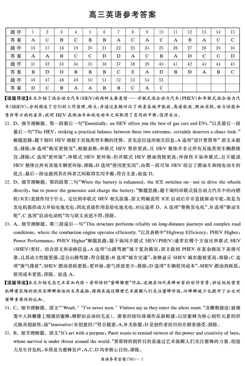 长郡中学2026届高三月考试卷(六)英语答案.pdf
