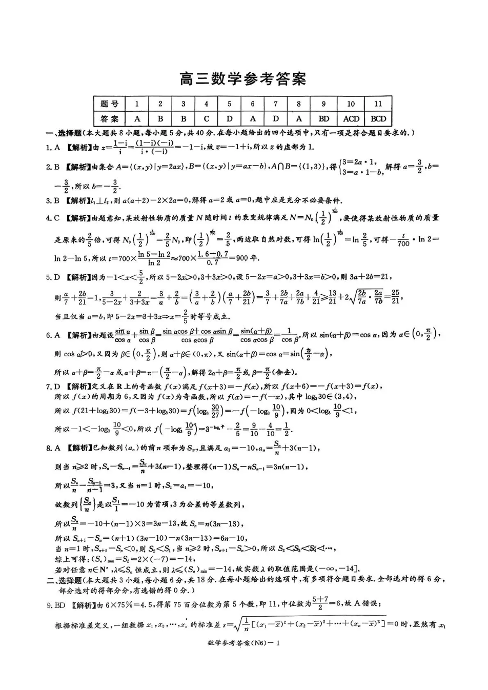 长郡中学2026届高三月考试卷(六)数学答案.pdf