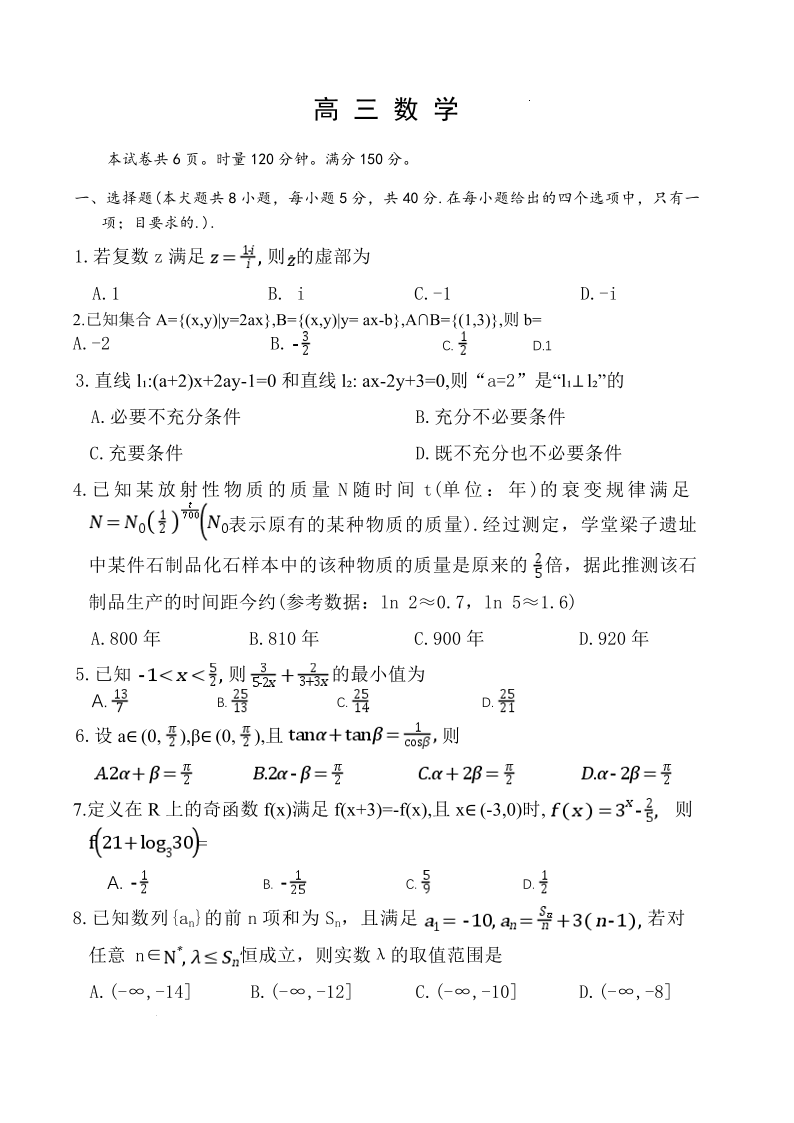 长郡中学2026届高三月考试卷(六)数学.pdf