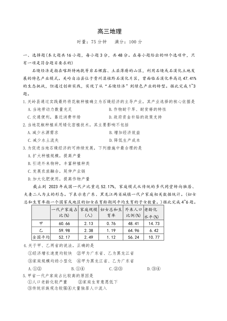 长郡中学2026届高三月考试卷(六)地理.pdf