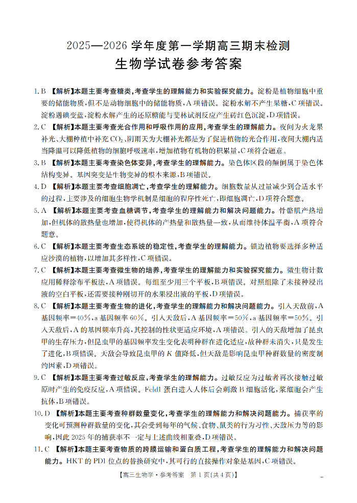 2025-2026学年度第一学期高三期末检测 生物答案.pdf