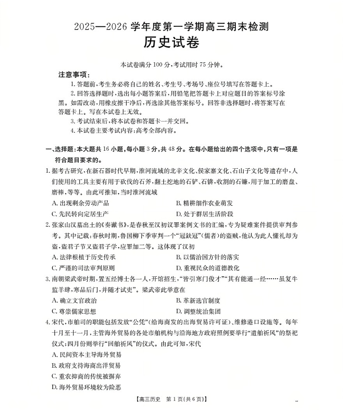 2025-2026学年度第一学期高三期末检测 历史.pdf