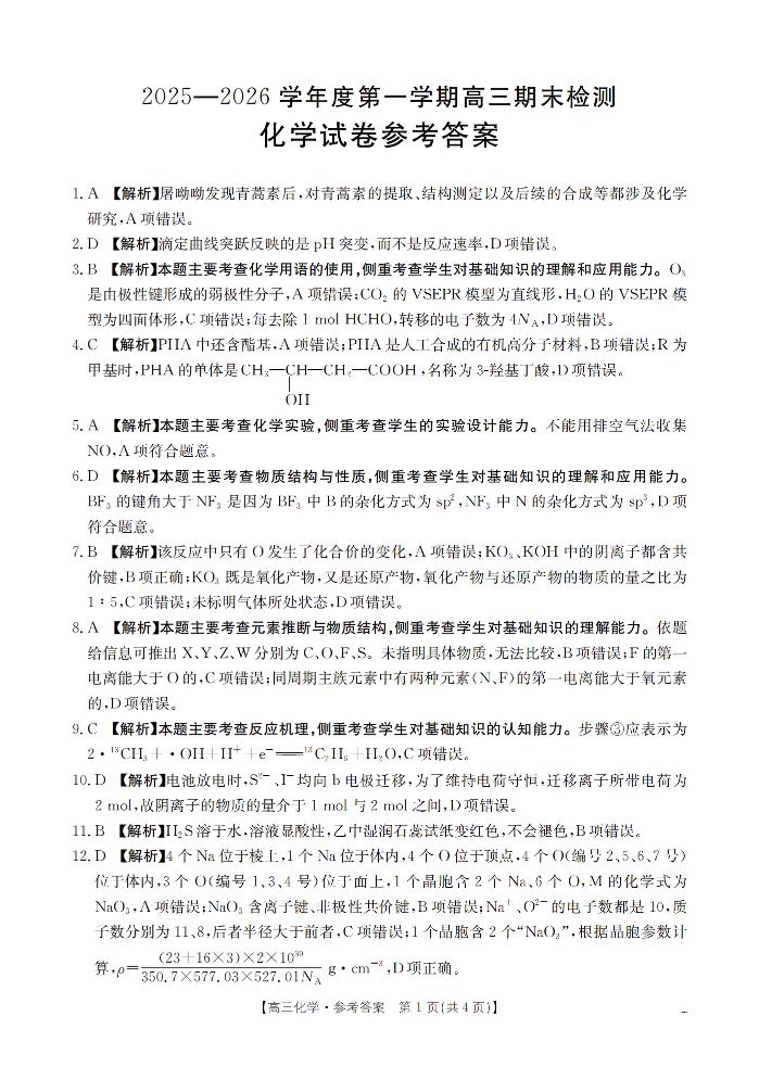 2025-2026学年度第一学期高三期末检测 化学答案.pdf